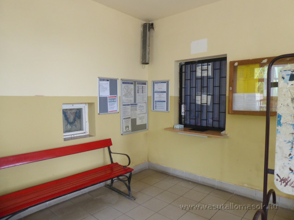 Pénztárablakok a váróteremben. A jobbra lévő, nagyobb ablak van már csak használatban.