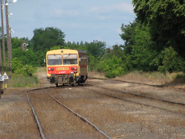 Egy Bzmot motorkocsi körüljár az állomás Hont felőli végén. A sínek állapota katasztrofális!