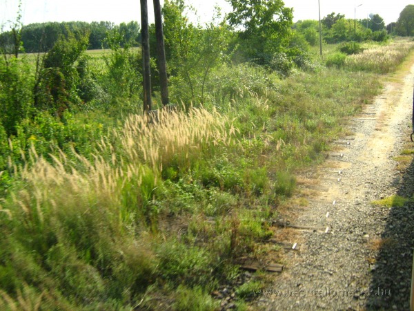 Az 1.vágány kiágazásának nyomai.(A gazban folytatódik,a talpfák megmaradtak.)