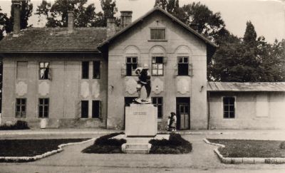 Korabeli kép a vasútállomás épületének utcafrontjáról.