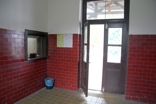 Ne ítéljünk a kinézet alapján! A kívülről szétlőtt, összegraffitizett, bedeszkázott ablakú épületbe belépve egy tisztán rendben tartott váróhelyiséget találunk, pénztárablakkal! Bár éppen nem volt ott senki,, úgy látszott üzemel a pénztár. Fotó: Várkonyi Tibor
