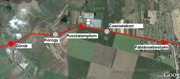 Működő és megszűnt megállók Fábiánsebestyén környékén