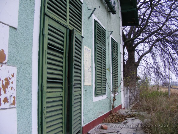Az egykori forgalmi iroda,és váróterem bedeszkázott ajtói,ablakai.