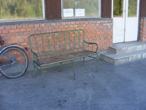 Csendélet. Egy régi pad a váróterem bejárata mellett.