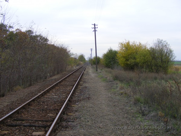 Az egykori peronon állva a vonal kezdőpontja, Szolnok felé tekintünk.