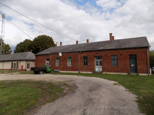 A felvételi épület utcafrontja a hozzájáró út részletével.