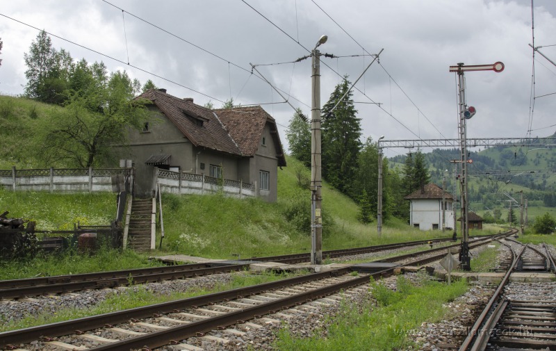 A kezdőpont felőli váltókörzet. Előtérben a pályafenntartás csíkszeredai kirendeltsége.