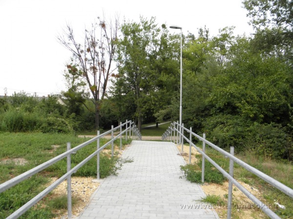 Kulturált lejutást biztosító lépcső a faluba (bár nem akadálymentesített)