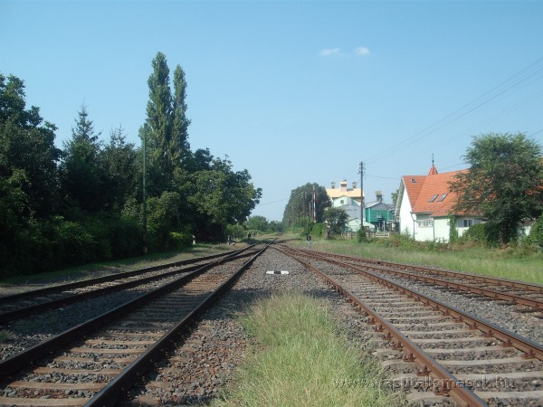 Tiszalök felé tekintve. Az útátjárótól jobbra található a Hajdú Gabona Rt. telephelye, ahová iparvágány ágazik ki.