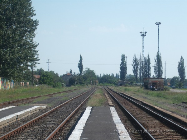Debrecen felé nézve. Az állomáson nincs kijárati jelző.