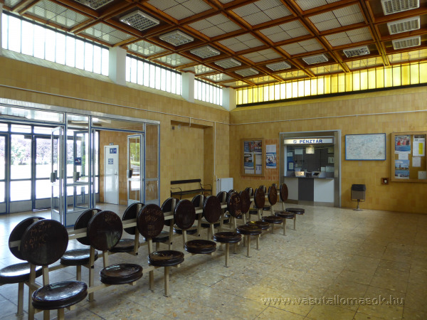 A váróterem a pénztárablakkal.