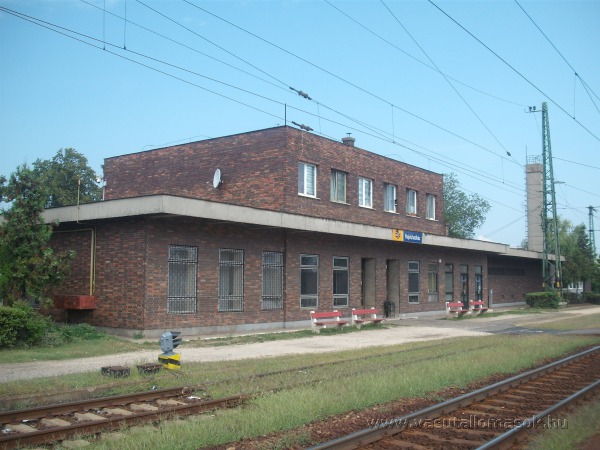 Az állomásépület Debrecen felől nézve.