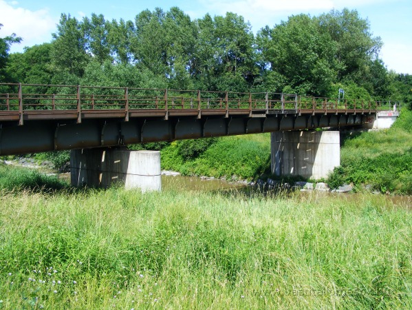 A vasútvonal Lajta folyó felett átívelő hídja.Trianon előtt ennek a középvonalánál húzódott Magyarország és Ausztria államhatára.