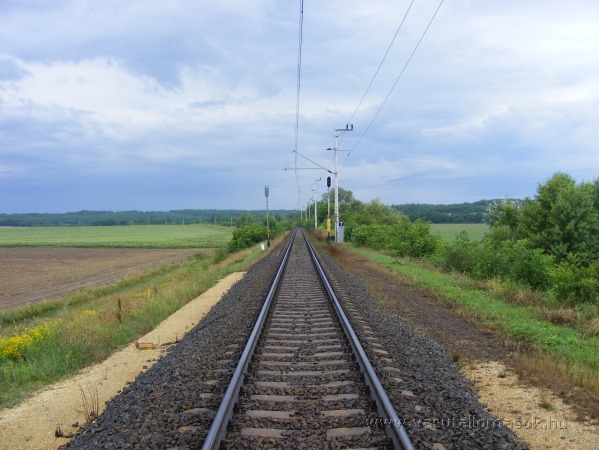 Pillantás az átjáróból a vonal végpontja (Szombathely) felé.