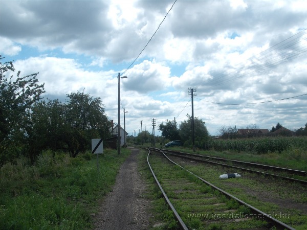 A kitérő irányú vágány 20 km/h-val járható, ez a lassújel ér itt véget.