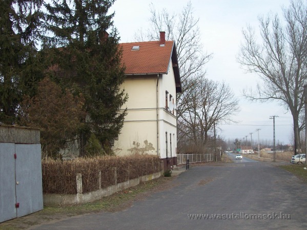 Létavértesi állomás, utcai oldal. Előtérben garázs. Nem olyan régen takarították az állomáshoz vezető beton járdát, és elszállítottak pár köbméter szemetet...