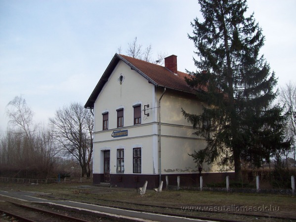 Az állomás épülete a peron felől. A pad már csonkán árválkodik. Gondoltam, megörökítem az utókornak, mielőtt összedől...(bár, az még odébb van)