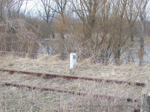 326 sz. szelvénykaró.(Ugye, így mondják) Háttérben mocsári erdő, vízimadarakkal.