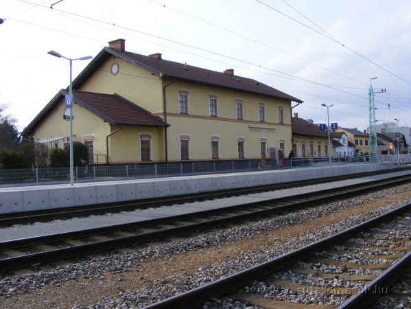 Az állomás felvételi épületének nézete Szárazvám felől.