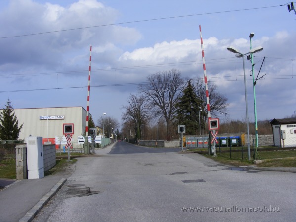 Az állomás Ebenfurthi oldalán lévő teljes csapórudas automata állomási fénysorompóval biztosított útátjáró a felvételi épület oldaláról nézve.