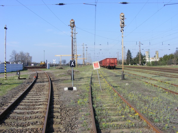 A VI. vágány ki van zárva a forgalomból. Balra a lekötőtelep kapuja.