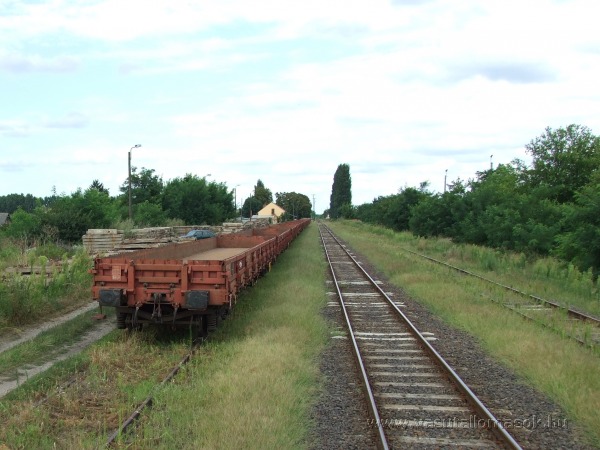 Ritka látvány, teherkocsik az első vágányon. Használt vasbeton aljak érkeztek a második-harmadik vágány átépítéséhez.