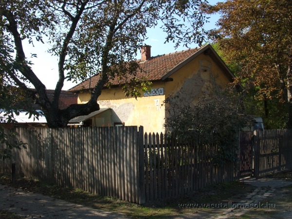 Magyarkanizsa Zenta felőli őrháza. Az őrház falán Topolya állomás magyar nyelvű névtáblája...