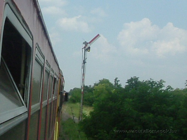 Ezen a kissé ferde képen az elágazás felőli bejárati jelző látható. mivel nem biztosított, a menetrendtől eltérő irányba történő vonatfogadás esetén a mozdonyvezetőt értesíteni kell a behaladás irányáról.