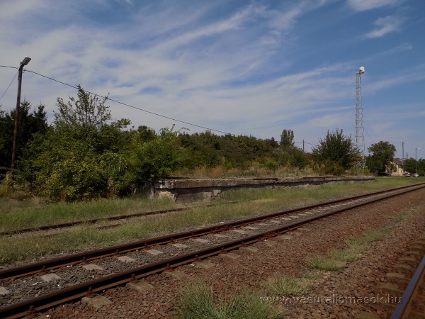 Az egykori raktárépület helye a felvételi épület végponti oldalán. Oldal- és homlokrakodó volt.