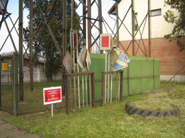 A kapcsolókert, előtte a jezési utasítás előírásinak megfelelő jelzőeszközök. Például a fehérszegélyes piros négyzetes tábla a járhatatlan pályarészt jelzi.