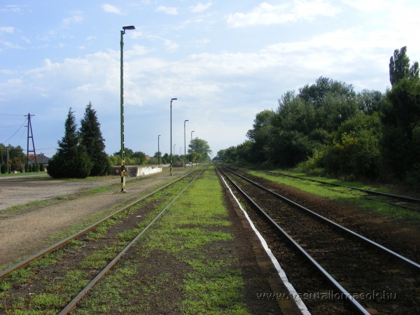 Pillantás a peronról a vonal kezdőpontja Pápa felé.