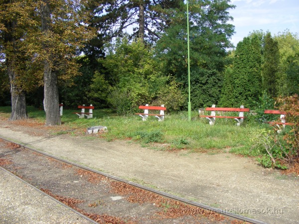 A felvételi épület mellett egy kis park néhány paddal a gesztenyefák árnyékában.