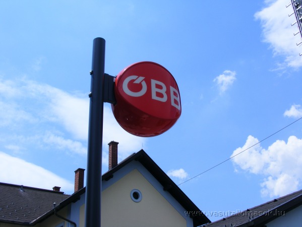 Az ÖBB emblémája a felvételi épület mellett.