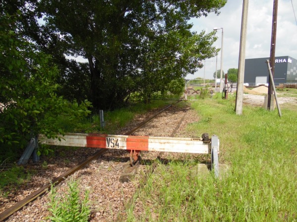 Az Acélművek egykori iparvágánya. A kapun belül kettéágazik. Több helyen felbontották a telephelyen belül.
