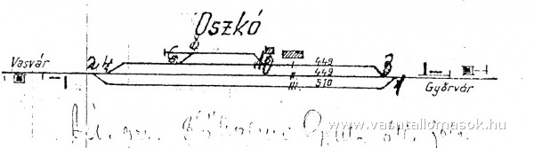 Oszkó állomás eredeti vágányai. Forrás: Lovas Gyula 125 Éves a Sopron-kanizsai vasútvonal,1865-1990.