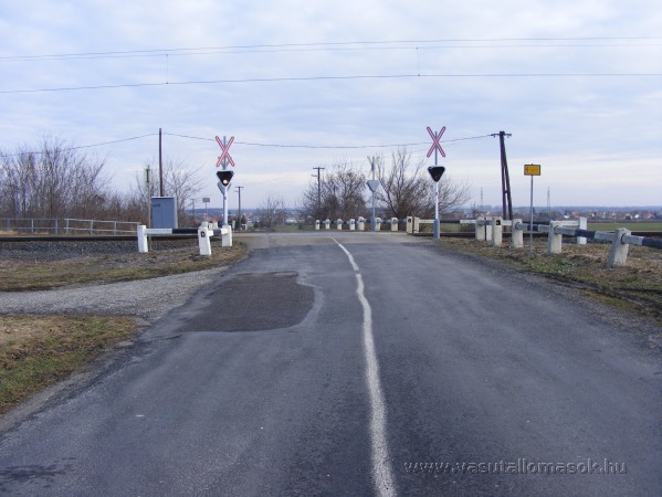 A megállóhelynél lévő vasúti átjáró a 84-es sz. főút felől nézve.