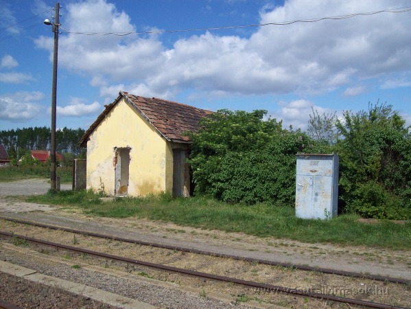Az állomás romos melléképülete.
