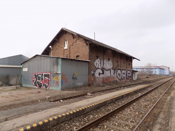 A raktárépület a vágányok felől. Ha volt is rakodórámpa már rég a múlté.