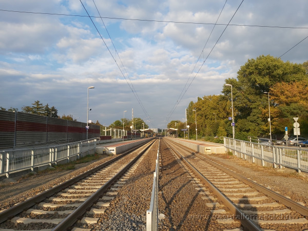 A megállóhely a Keleti pályaudvar felőli gyalogos átjáróból nézve.