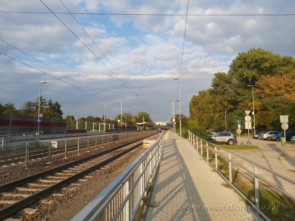 A jobb vágány peronjához vezető út a Keleti pályaudvar felől nézve.