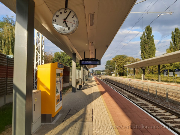 A bal vágány peronján bérlet és jegyautomata került kihelyezésre, a kép készültéig a jobb vágány peronján nincs automata.