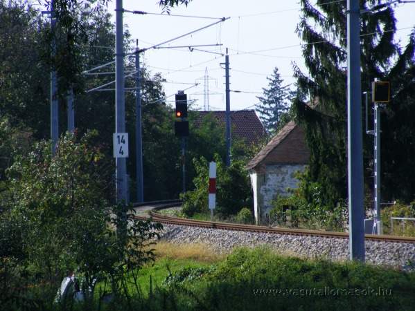 A megállóhely felől jól látható Sérc állomás Fertőfehéregyháza felőli bejárati jelzője.