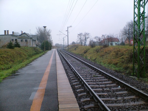 A megállóhely peronja Lövő állomás felé nézve.