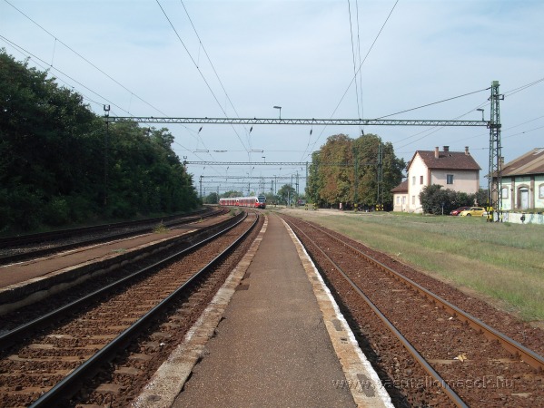 Budapest felé tekintve az állomás Pusztaszabolcs felőli végéből. A háttérben a csak hétköznapokon közlekedő százhalombattai személyvonat látható.