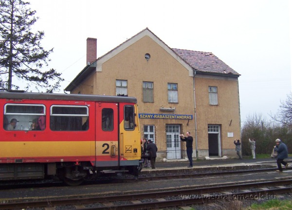 Az utolsó nap Szanyban; az érkező utasok a rossz idő ellenére is szaporán fényképezik a vonatot (forrás: Győri Róbert)