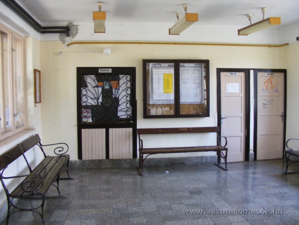 Jegypénztár, váróterem és mellékhelyiségek.