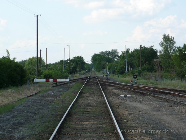 Az átmenő fővágány tengelyében állva Szolnok felé tekintve. Baloldalon régen nem használt iparvágány húzódik.