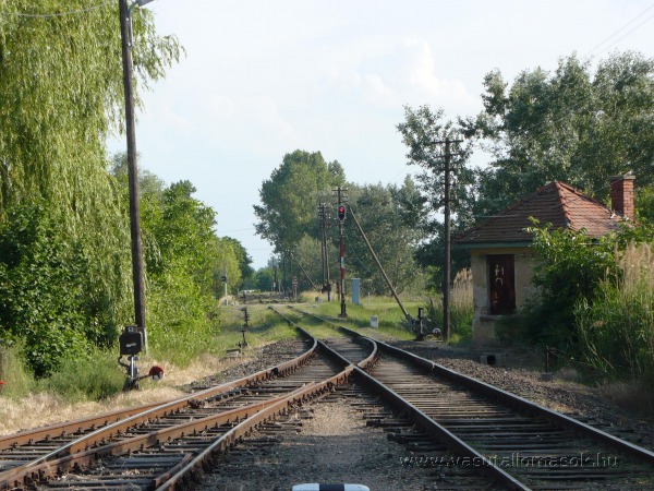 Lakitelek felőli váltókörzet. Az állomás mind a 2 oldalról alakjelzőkkel van biztosítva. A képen látható fényjelző csak az előtte lévő vasútátjárót biztosítja.