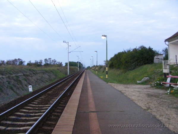 A megállóhely peronja Lövő állomás felé nézve.