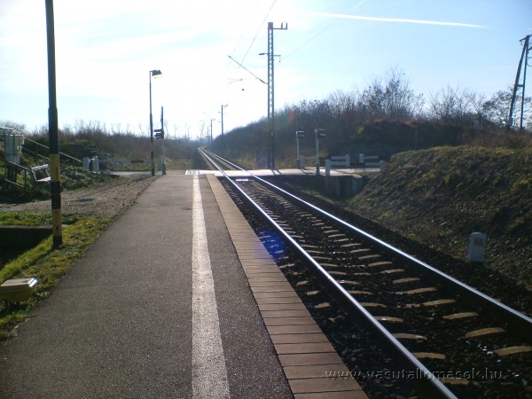 A megállóhely peronja Bük állomás felé nézve.